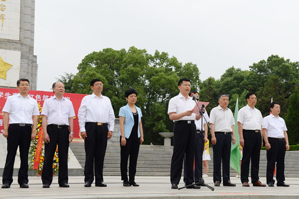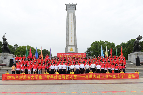 本网讯 (通讯员 张章  刘鹏)最大的思政课开讲啦!5月29日,2018年湖北省大学生“青年红色筑梦之旅——再进大别山 红色永流传”主题活动在红安县烈士陵园举行。活动由湖北省教育厅和黄冈市人民政府主办,我校和红安县人民政府承办。
