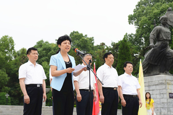 省教育厅党组书记、厅长陶宏,省委高工委副书记余学敏,黄冈市委常委、红安县委书记余学武,黄冈市副市长陈少敏,我校党委书记王立兵,校长陈兴荣,党委副书记、纪委书记李金奇,党委常委王锋等出席仪式。余学敏主持活动。来自全省129所高校的领导和师生代表500余人参加主题活动。