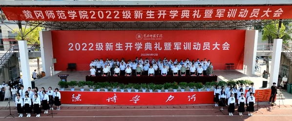 “滔滔长江水,巍巍大别山,东坡赤壁聚英贤。百年黄师,风雨如磐,筚路蓝缕易春秋,薪火永相传……”在校学生合唱团带领下,全体师生齐唱校歌,开学典礼暨军训动员大会在全体师生齐唱校歌的嘹亮歌声中圆满结束。