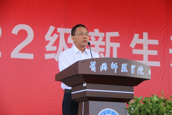 开学典礼在庄严的国歌声中拉开帷幕,教师代表、文学院(苏东坡书院)胡立新教授,校友代表、湖北精诚钢结构股份有限公司董事长孙秋正,在校生代表、 2021级学科教学(语文)教育硕士陈思含,新生代表、生物科学2205班“优师计划”物理最高分吴题同学先后作了发言。胡立新希望2022级新生潜心问道,追求真理;明确方向,努力奋斗;赤子之心,安身立命;学习苏轼,超越自我;孙秋正向2022级新生分享了自己的人生箴言“逐梦唯笃行,奋进正当时”;陈思含同学以“志存高远,脚踏实地;博览群书,勤于思考;知行合一,勇于创新”的要求与2022级新生共勉;吴题同学鼓励2022级新生乘风破浪,志存高远勤思敏学,用理想的风帆承接住新时代的风向,在军训的呐喊与脚步声中走向大学生活。